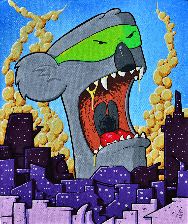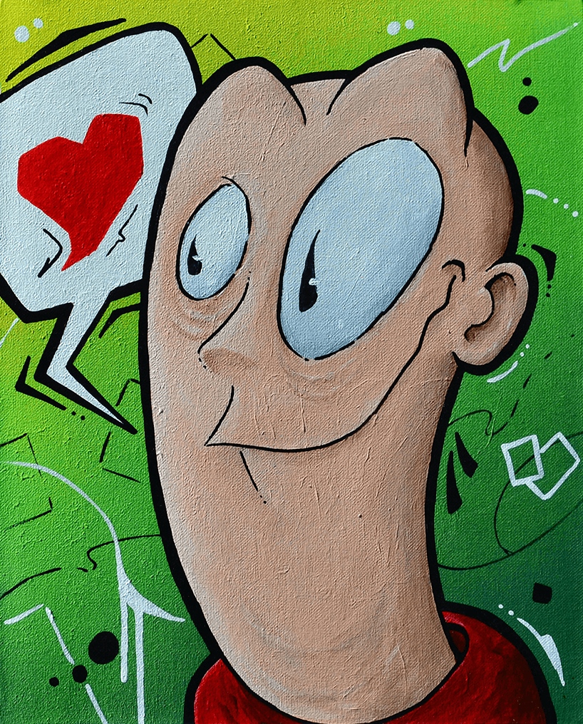 Another big challenge (and opportunity) to me is that it seems like very few people with a cartoon and graffiti based style are into acrylics so the access to tutorials and such are quite limited. But, challenges exist to be overcome, so at the moment I'm trying to combine acrylic paint with my go to subject: cartoony nonsense and strange humor.